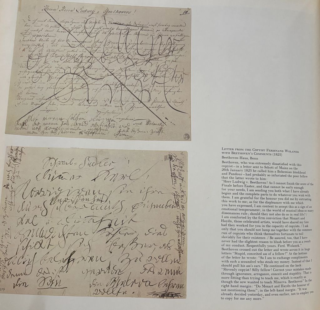 Beethoven had a busy mind, and carried notebooks everywhere to keep track of his thoughts. They are a hodgepodge of shopping lists, complaints, musical ideas, and (bad) arithmetic. When his hearing problems worsened, he used them as "conversation books" to communicate.